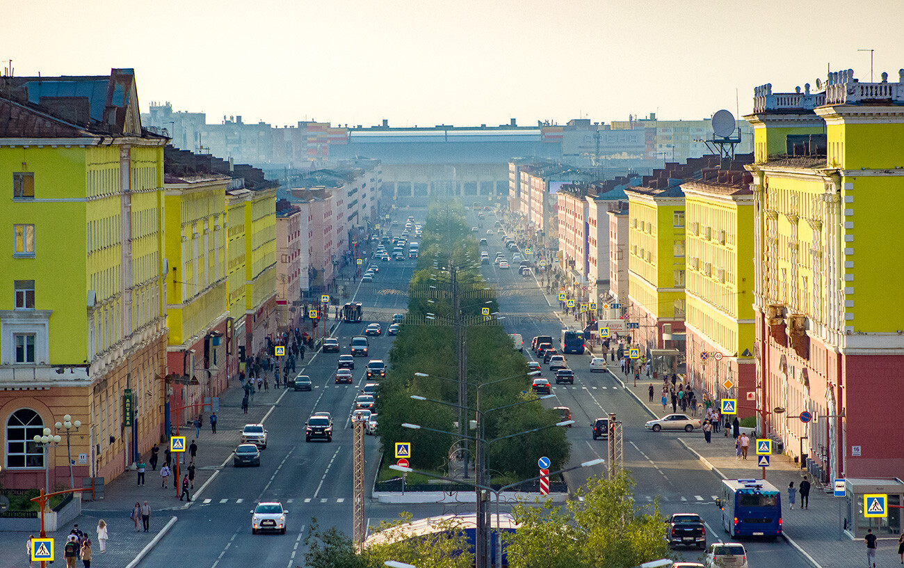 世界上第二大的北极城市也在俄罗斯,它就是诺里尔斯克(克拉斯诺亚尔斯克边疆),北极圈以北约300公里的地方(69°20′)。这座城市的气候条件是俄罗斯最恶劣的,到了漫长的冬季这里除了皑皑白雪,就只剩下寒风肆虐。但是确实俄罗斯最大的工业城市,这里拥有斯大林帝国风格的工业中心建筑,许多工厂区的建筑都是多彩多色的。