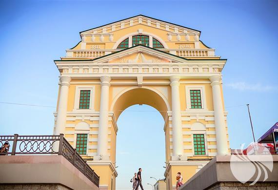 凯旋门是一幢四层楼的建筑高19米,宽近16.5米,最顶层是茶室,是为纪念亚历山大一世登基十周年而建立的。其始建于1811年,在1813年的开幕当天就为当时的民政总督尼古拉·特雷斯金(Nikolai Treskin)和本杰明一世主教安排了招待会。