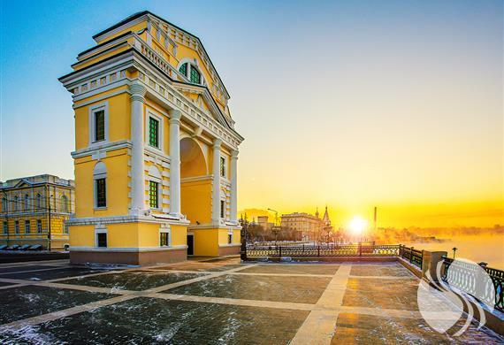 伊尔库茨克凯旋门又称“莫斯科大门”,位于基洛夫广场边上。伊尔库茨克早先是有城墙的,从莫斯科来的人要从这里进入伊尔库茨克,因此叫做莫斯科大门。