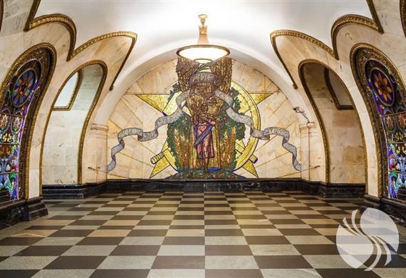 有观光客必访的共青团车站,里面金碧辉煌如同沙皇宫殿。它的设计主题是展示爱国史,激发人们对俄罗斯的未来充满向往。这个宏伟的地铁站是著名建筑师休谢夫为纪念苏联人民在伟大的卫国战争中取得的胜利而设计修建的。特别的塑像,植物装饰和雕花组成了八幅华美的马赛克雕画。地铁站的设计生动地描绘出了俄罗斯伟大军人的形象,表现了“胜利的凯旋”和“列宁在红场上演讲”的场景。