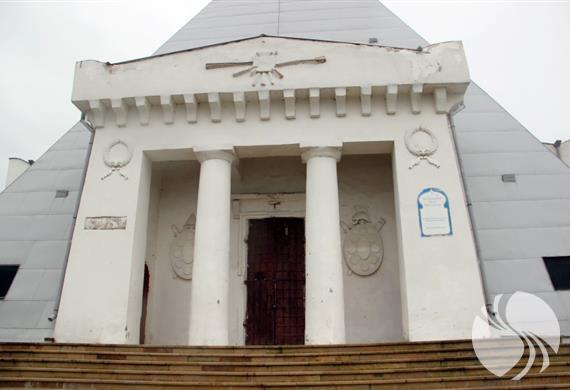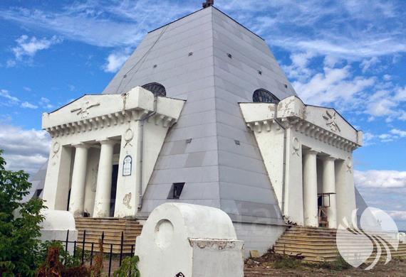 圣殿纪念碑高20米,以截顶金字塔的形式建造,其顶部竖立了金色十字架。在每一侧都有台阶和入口,装饰有带有柱子的希腊门廊,在山墙饰上描绘了圣乔治十字架。