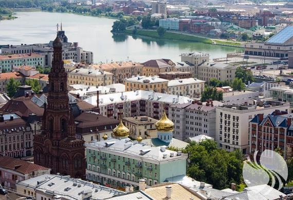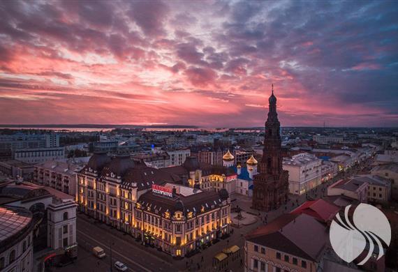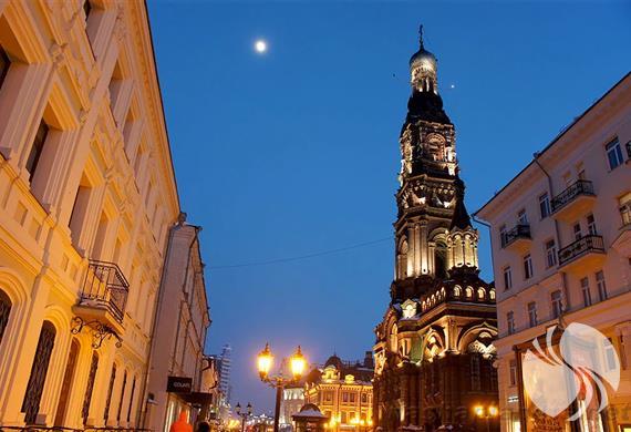 喀山主显节大教堂,它是城市的主要历史景点之一。附近是一栋更为著名的建筑——钟楼。从其高度可以看到喀山的全景,并且外部装饰值得注意。