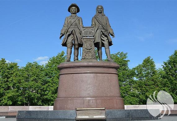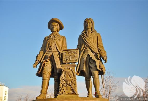 传闻在现实生活中,塔季谢夫和德格宁性格迥异,但是雕塑家将他们雕刻成类似双胞胎的样子,又故意设计了一个“不和谐”的作品:一个戴帽子一个不戴帽子。其中塔季谢夫(Tatishchev)头戴一顶假发,德格宁(De Gennin)头戴一顶帽子。