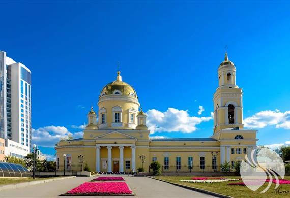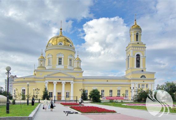 叶卡捷琳堡圣三一大教堂始建于1818年,是乌拉尔古典主义的最好代表之一。圣三一大教堂在附近设有浴场,豪华酒店,犹太教堂,国际贸易中心等。在晴朗的日子里,阳光照在建筑物的金色圆顶上,明亮的黄色墙壁和金光闪闪的金顶相得益彰。