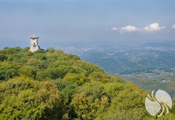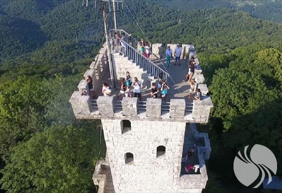 阿洪山瞭望塔是由建筑师沃罗比约夫设计,历时101天建成。其高度达30米,也是霍斯塔区最高点,是罗马式白色石灰岩建筑,外形更是像一座中世纪骑士城堡。