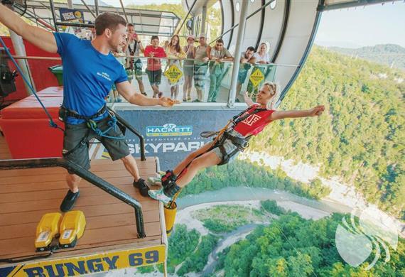 沿钢丝绳的下降,路线是向着公园的入口,飞行距离700 m,速度最高70 km/h。穿过悬索式天桥后,不必再沿着它前进。从峡谷的一个边缘到另一个边缘,可以直接返回到KAURI餐厅的酒吧,回到飞行中的公园入口。