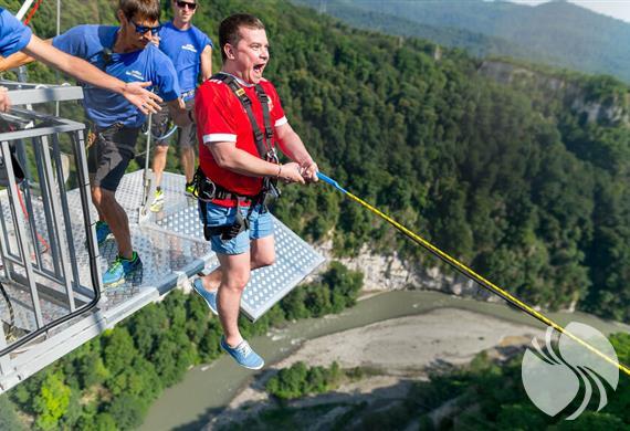 位于439米长的世界最长吊桥上的观察平台有207米高,从这里可欣赏到Akhshtyrskiy峡谷、高加索山脉的雪顶和没有地平线的黑海海岸,壮丽美景一览无余。对于热爱更刺激运动的游客,还能进行山间蹦极。除此之外,还有世界上最高的秋千,钢索栈道等极限项目。