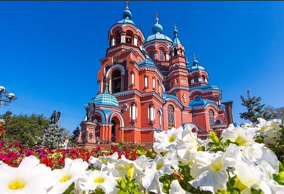 伊尔库茨克喀山大教堂坐落在市区,是伊尔库茨克唯一的一座东正教教堂,是伊尔库茨克乃至整个西伯利亚地区最为华美的教堂。教堂建造了七年,于1892年的复活节开放,它以上帝之母的喀山圣像的名义被完全称为圣母玛利亚-伊尔库茨克教堂,并且在不同的时间,它同样也是是信徒们的地方。