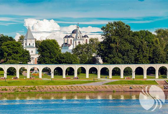 除了商业街,这里还残留着7处12-17世纪的教堂,它们被逐个修复和对外展示。大概位于建筑中心位置的大教堂,名叫“圣尼古拉斯大教堂”,是1136年的建筑。除了教堂内部祭坛里的部分旧壁画之外,在教堂地下也残存有教堂最早的壁画——《最后的审判》的碎片。它是俄罗斯最古老的一幅《最后的审判》,上面绘有漂流在河中、有醉蛇小龙盘曲在脚上等人们的形象。教堂的其他部分用于展示与教堂修复、挖掘工作相关的内容。北部不远处的砖瓦色教堂母神教堂,建造于1207年。其中央穹顶两侧残存也有水彩壁画,这也十分难能可贵。道路对面的“市场上的格奥尔吉教堂”,是17世纪的建筑物,当代演变为收集有古代诺夫哥罗德城镇照片的展示室。