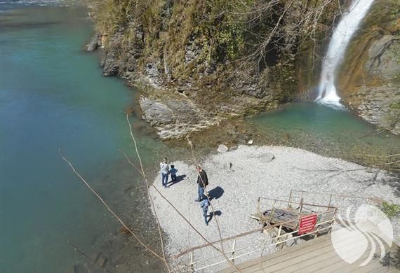 索契河,在峡谷底部流淌着蓝丝带,流入黑海