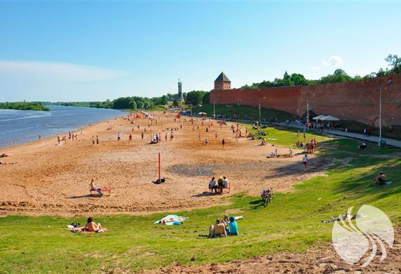 沃尔霍夫河两岸的主要城市海滩位于克林姆林宫的正下方。由于其干净和整洁,这里是当地市民中最喜欢的度假地点。海滩位于风景如画的克里姆林宫的墙壁后,茂盛植物,清澈的水面,细软的沙滩,如果你前往大诺夫哥德旅游必去的景点之一。