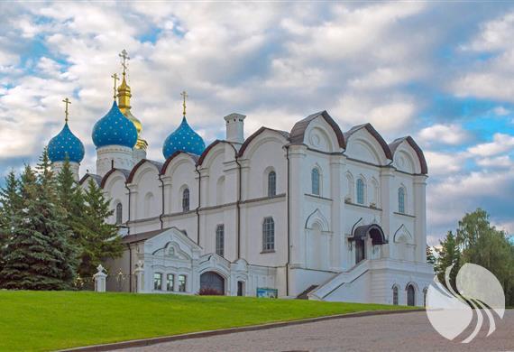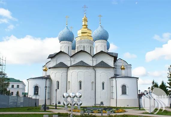 这座具有里程碑意义的天使般的白石大教堂最初以五穹顶,三尖顶,六英尺长的寺庙的形式建造。它是从伏尔加河对岸开采的伏尔加河石灰石建造的。寺庙的圆顶最初是头盔状的。 建造圣殿后,在其附近建造了一座木制钟楼。并且在17世纪上半叶,竖立了一座50米高的五层白砖钟楼,一下子就能让人联想起莫斯科伊凡大帝的钟楼,其高度略逊于喀山克林姆林宫斜塔。 1928年,由于意识形态原因,钟楼被摧毁。现在在钟楼的遗址上,有一个公共花园,2003年,由一群喀山雕刻家设计了纪念碑“喀山克里姆林宫的建筑师”。