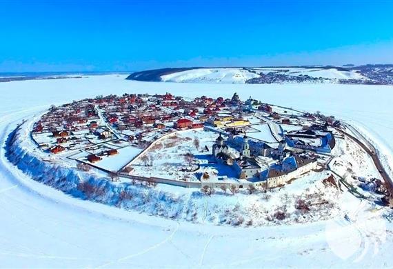 斯维亚日斯克岛(距离喀山60公里),这座被联合国教科文组织列入世界遗产名录的村庄不再是一座岛屿,而在苏联时期因洪水被淹没的一座半岛,通过一条狭窄的道路与大陆重新相连。这座岛的崖岸高于水面之上,是俄罗斯最奇特、最壮丽的旅游景点之一。身处斯维亚日斯克岛上,伏尔加河周围数公里的景致尽收眼底。 现在的斯维亚日斯克岛是一座仅有258人居住的宁静村庄,拥有丰富且有趣的历史和建筑。伊凡雷帝于1551年曾将这里作为一处要塞,这座木质的圣三一教堂是岛上唯一一座使人想起那段历史的建筑(教堂在四周内即建造完成)。岛上还有其他七座教堂和修道院。这里的许多居民都住在岛上的大厦内,从远处就可以看到。