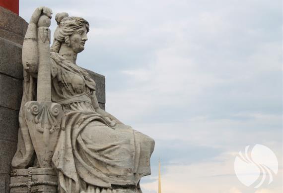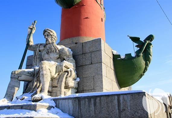 “罗斯特拉”是船头的意思,将敌军的船头砍下来,装饰在柱子上,用以庆祝胜利,源于古罗马的一种风俗。也有传说是当年彼得大帝大败瑞典海军,把被他打沉了的战败国军舰塑到柱上以作纪念,有点像中国人的斩首示众的意思。