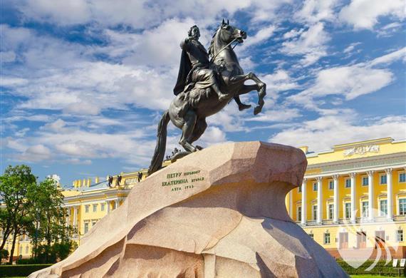 现在大家看到的彼得大帝所骑的马代表俄罗斯,它双脚腾空,好像要冲破一切阻力勇往直前,在马掌下有一个踏死的大蛇,它代表了一切阻止彼得大帝改革维新的守旧派,正如雕塑展示的一样,彼得大帝冲破了重重阻力,在这片沼泽地建起了这座美丽的城市圣彼得堡,并建都于此,把落后、封建、贫穷的俄罗斯,带向了海洋与繁荣。
