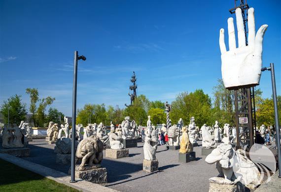 Muzeon雕塑公园位于莫斯科河畔克里米亚堤,建于1992年,每年接待约250万人,占地面积为23.5公顷,是俄罗斯最大的露天雕塑博物馆,园内坐落着上千件雕塑作品,分布在草坪和林荫道两旁。2015年10月起,并入高尔基公园。