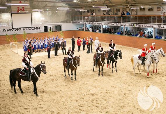 室内竞技场由两层组成,并在二楼设有VIP区,总面积为944平方米,一次最多可容纳300名观众。在这里可以骑马、观看著名马术剧院“特技演员”的表演(该剧院被公认为俄罗斯马戏团艺术的明珠之一)。