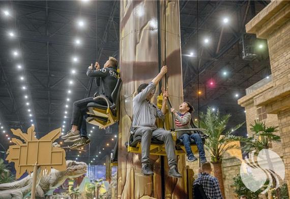 在风的翅膀上(家庭游玩区):俄罗斯最大的球形电影院,宾客沉浸在恐龙世界中,在20米的高空飞翔。骑乘该景点时会伴有适当的气味,刮风,泼水和其他效果,有助于充分体验恐龙世界的独特性和神秘性。