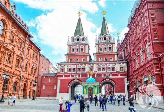 1812年卫国战争博物馆(右)、复活城门(中)、俄罗斯国家历史博物馆(左)