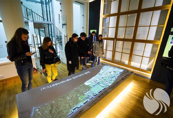 其实,并非每个人都能够想到高尔基公园正门的入口处有一座博物馆。因为,以前公园正门的塔架和入口处的场所是不对游客开放。这里是公园的管理部门,在70年代时有一个照相馆。2014年,修复了拱门并恢复了其历史外观。不久之后,在左塔开了一家博物馆,在右塔开了一座演讲厅和一家纪念品商店。