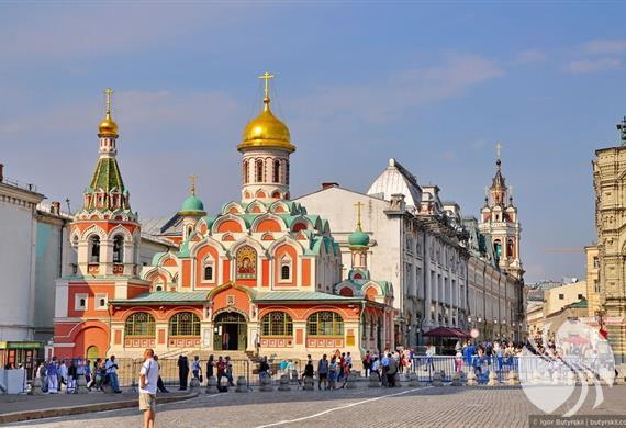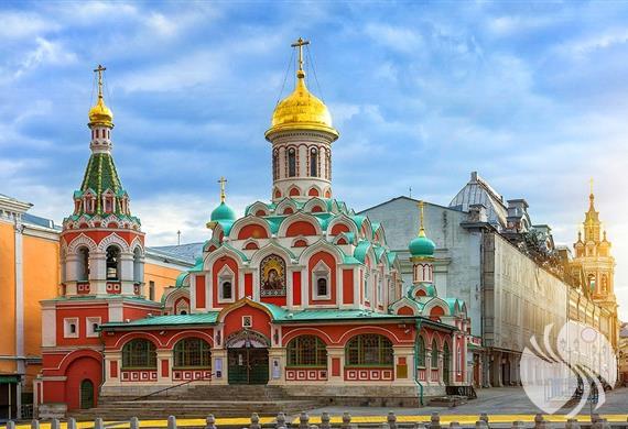 莫斯科喀山圣母大教堂是莫斯科最重要的教堂之一,也是莫斯科的一座东正教教堂,位于红场东北角,是为了纪念击退1612年波兰军队入侵而建。原先的建筑在1936年被斯大林下令拆除,目前的建筑是1993年重建,具有俄罗斯东正教典型的建筑风格。