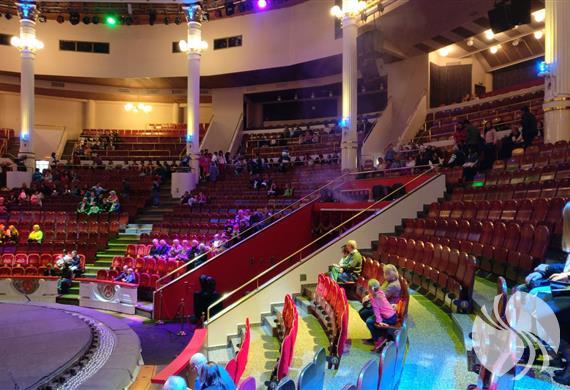 马戏院的演出厅可同时容纳2000人,内部装饰华丽,红色是主要色调,观众席围绕着中间圆形的舞台呈放射性设置。每一区的观众席之间有一个安装了五彩灯饰的通道。演出厅配备了高科技的灯光设备,演出时,其精心打造的魔鬼的森林、如梦如幻的城堡、皑皑冰雪世界、色彩缤纷的童话世界等场景,都让观众有着身临其境的感觉。
