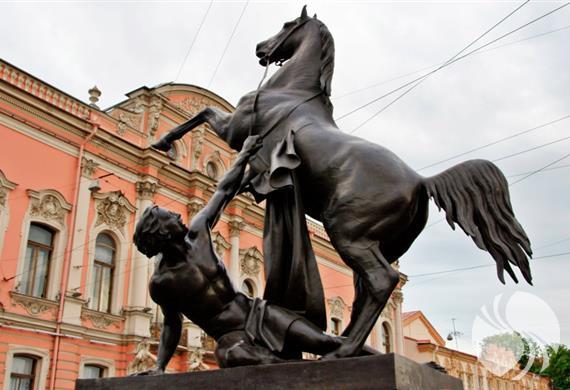 桥头分别矗立着驭马青年朝气蓬勃的“驯马师”塑像(彼得·克劳得特的最佳作品使他名扬四海):四组塑像描绘了青年驯服野马的不同时刻,表现力丰富,动感极强,美不胜收。还有浮雕的铸铁栅栏,上面浮雕着独特的美人鱼和海马。
