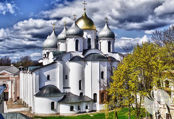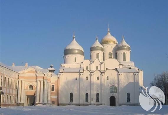 圣索菲亚教堂1045年至1050年建造的圣索非亚大教堂是俄罗斯保存最好的11世纪教堂,也是俄罗斯境内现存最古老的建筑。教堂共有6个穹顶,中间一个最高,为金色,其他5个穹顶则为银色,据说这是诺夫哥罗德教堂的一大特色。