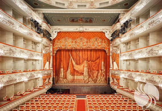 这栋古老建筑最初的设计图出自亚历山大·巴甫洛维奇·布留洛夫之手。1833年,剧院正式落成,剧院外观简洁,并无张扬。但走进剧场内,天鹅绒的观众椅,金碧辉煌的浮雕,水晶吊灯,彩绘壁画,古董镜子……处处彰显皇家奢华与典雅!