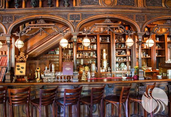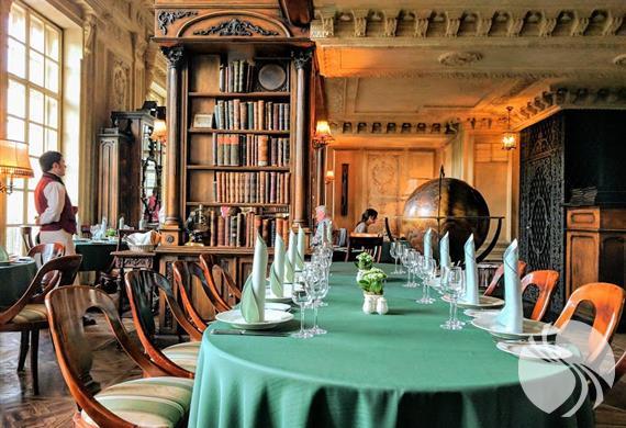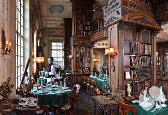 餐厅的内部装饰显得非常多样化:望远镜、显微镜、地球仪……重现了19世纪俄罗斯贵族的书房或办公室的场景。二层的“藏书馆”令人惊叹,大大的复古式书架,摆满了各式各样的书籍,训练有素的服务生们在书架和餐桌间穿行,在这里用餐,一不留神,就会有“回到”19世纪。