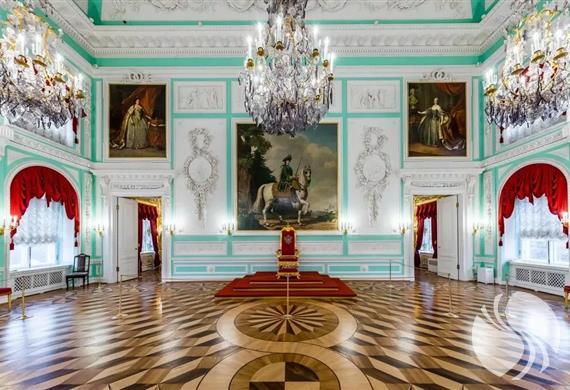 大宫殿宏伟且华丽,内有30间厅室,其中宴会大厅最为出名,大理石铺就的地板大气厚重,艺术彩绘的天花板美轮美奂,鎏金装饰的墙面奢华无比。这样一个极致华丽精致的宫殿,以前可是俄罗斯上层社会的活动中心,舞会,派对,庆典活动……这里见证了那个时代俄国的辉煌。
