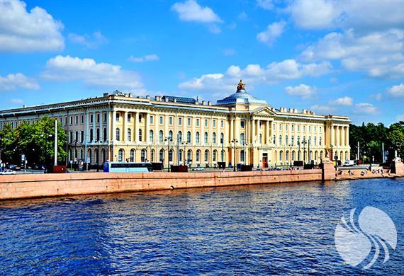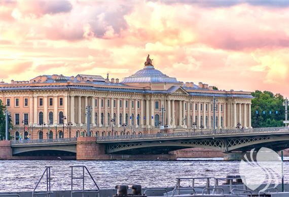 在从巴洛克到古典主义的过渡时期建造的主导大学路堤的艺术学院建筑,如今已成为联邦的建筑纪念碑,并享有涅瓦河对岸的壮丽景色。主立面在建筑平面图中几乎是正方形的,中央有一个大型圆形庭院,面向涅瓦河,以中央和侧面挑高装饰有门廊。