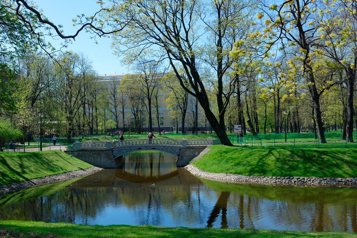 这个花园比邻夏日花园、米哈伊洛夫斯基宫(俄罗斯博物馆)和滴血救世主教堂,公园内有宽阔的巷路和翠绿的池塘。