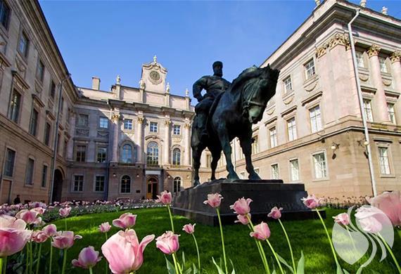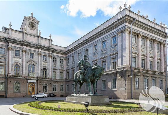 大理石宫的正门前是20世纪初俄罗斯杰出的雕塑纪念碑:亚历山大三世皇帝骑马雕像。1909年至1937年,它位于莫斯科火车站前的起义广场上,1994年搬到这里。