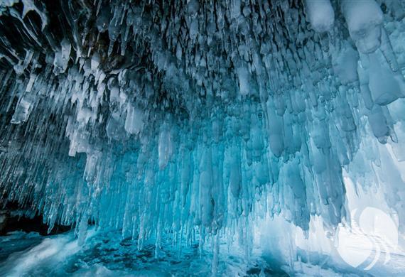贝加尔湖地处西伯利亚地区,是世界上最深的湖泊,每年冬季强烈的风暴会向洞穴注入大量降水,水汽在零下的温度中立即凝结,从而形成这些冰窟。冰窟中的冰柱看起来像颠倒的哥特式建筑尖顶,有的可超10英尺(约3米)长。