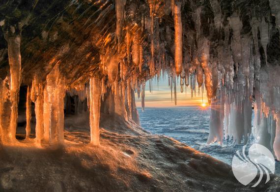冰柱位于奥利洪岛的南部,是冬季奥利洪岛南线行程中必看的景点之一。冰洞中的冰柱在自然光下呈蓝白色,每当夕阳西下或用火把照射时这些半透明的冰柱又会被染成温暖的橙红色,令人不由得惊叹大自然的鬼斧神工。
