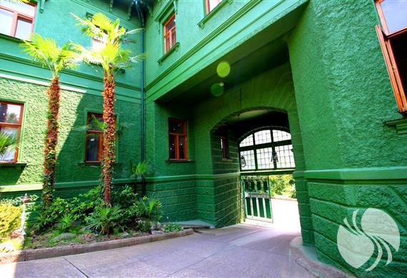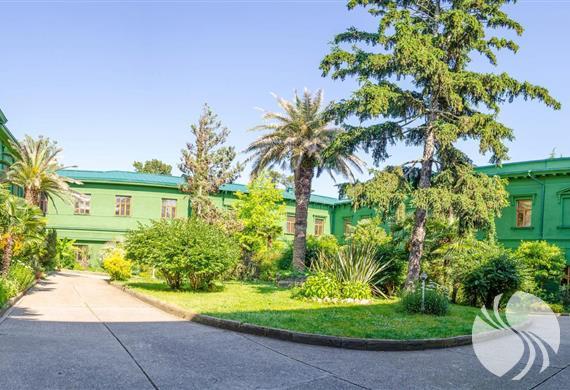 别墅被50公顷的别致森林带所环绕,左中右三面环绕着二层的楼房,院子中央是花坛,一棵挺拔的棕榈树分外醒目,其实,棕榈树这个地方原本是座喷泉,但因为斯大林不喜欢喷泉,于是拆掉喷泉种上了棕榈树。