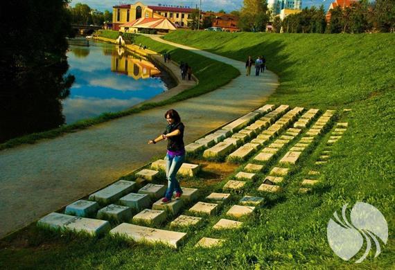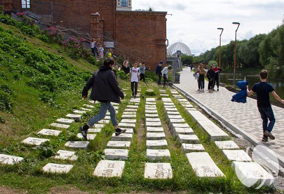 叶卡捷琳堡首个致力于计算机键盘的陆地艺术雕塑。2005年10月5日开放。巨大的键盘由耐用的防破坏混凝土制成,它是常规计算机键盘的精确副本,比例为30:1,104键。除“空间”重量为半吨外,每个钥匙平均重100公斤。这并不能阻止故意破坏者有时将它们捡起,纪念碑刚开始铺设时候,f1和f2键遗失过。