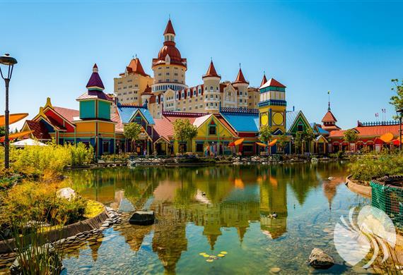 而公园的正式开幕于同年6月28日,并伴有马戏团Du Soleil和烟花表演。整个公园主体包括主题游乐场和酒店建筑群,可同时接待12000名游客。