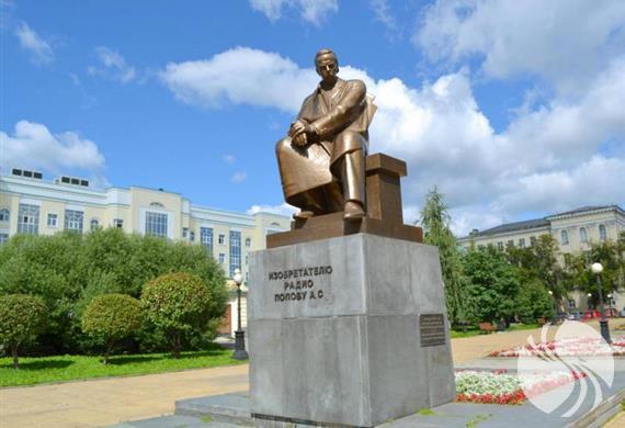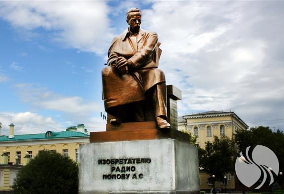 亚历山大·波波夫纪念碑,建于1975年5月7日,用于纪念无线电波的发明者亚历山大·波波夫。纪念碑展示的是这位无线电波之父以一个沉思的姿势坐在长椅上听收音机的形象。1986年,叶卡捷琳堡市还创建了无线电波博物馆,用以纪念亚历山大·波波夫以及他的家人。
