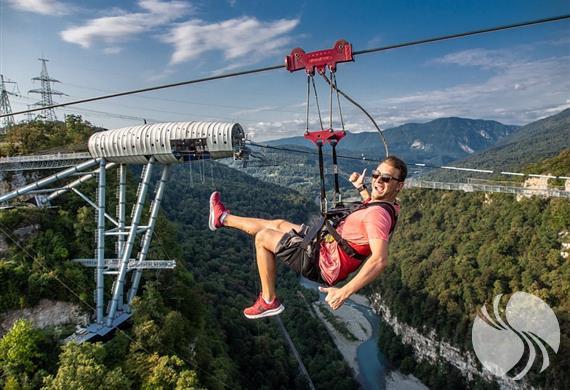 “巨魔”式滑行是世界上最快,时速可达120 km / h。沿着峡谷上方的金属绳在200米的高度上滑行。您可以独自飞翔,以两种或三种不同的风格飞翔。