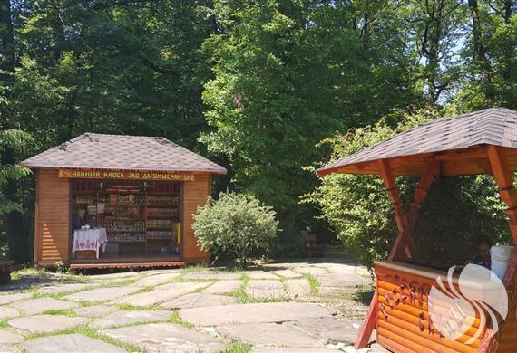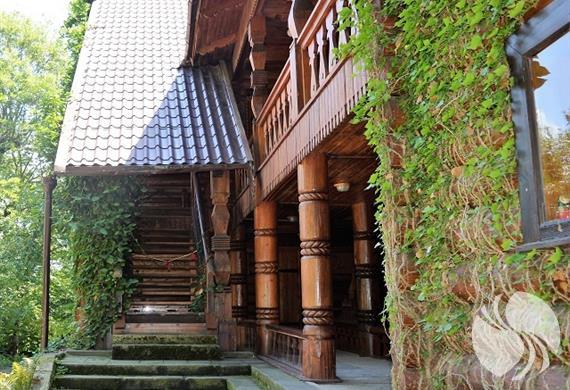 索契茶馆是木制的木屋,根据莫斯科建筑师Schwarzbrain的项目,由Hutsul工匠于1972年建造。该建筑建了18个月,并用木雕装饰。这所房子是由一个工匠家庭(一个父亲和两个儿子)在18个月内建造的。这所房子装饰有木雕和著名的俄罗斯大师的俄罗斯民间工艺品展览。