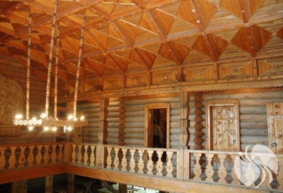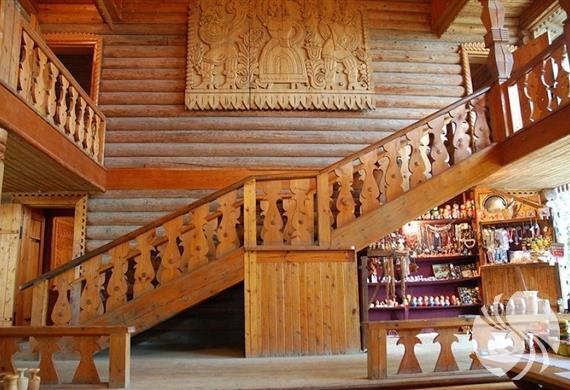 二楼客厅陈列着基泽伊建筑的复制品-露天的俄罗斯木制建筑博物馆,其模型是由索契大师Donchakov制作的。
