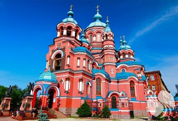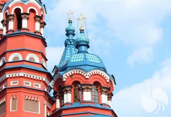 伊尔库茨克喀山大教堂坐落在市区,是伊尔库茨克唯一的一座东正教教堂,是伊尔库茨克乃至整个西伯利亚地区最为华美的教堂。教堂建造了七年,于1892年的复活节开放,它以上帝之母的喀山圣像的名义被完全称为圣母玛利亚-伊尔库茨克教堂,并且在不同的时间,它同样也是是信徒们的地方。