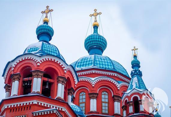 教堂具有典型的拜占庭式建筑风格,浑厚的红色外墙,蓝色洋葱头般的穹顶,在西伯利亚灿烂的阳光照耀下熠熠生辉,如同童话中的城堡,极具视觉冲击力;夏季和春季的喀山教堂也是明亮如画,色彩缤纷。