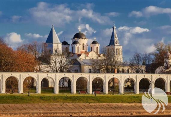 除了商业街,这里还残留着7处12-17世纪的教堂,它们被逐个修复和对外展示。大概位于建筑中心位置的大教堂,名叫“圣尼古拉斯大教堂”,是1136年的建筑。除了教堂内部祭坛里的部分旧壁画之外,在教堂地下也残存有教堂最早的壁画——《最后的审判》的碎片。它是俄罗斯最古老的一幅《最后的审判》,上面绘有漂流在河中、有醉蛇小龙盘曲在脚上等人们的形象。教堂的其他部分用于展示与教堂修复、挖掘工作相关的内容。北部不远处的砖瓦色教堂母神教堂,建造于1207年。其中央穹顶两侧残存也有水彩壁画,这也十分难能可贵。道路对面的“市场上的格奥尔吉教堂”,是17世纪的建筑物,当代演变为收集有古代诺夫哥罗德城镇照片的展示室。