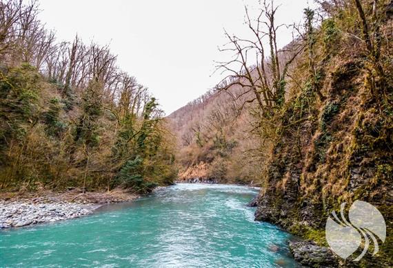 索契河,在峡谷底部流淌着蓝丝带,流入黑海
