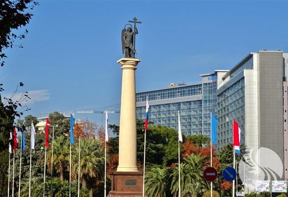 大天使米迦勒纪念碑高7米,建造于2006年5月10日,坐落在索契市中心区的库洛特尼大街上,纪念碑的不远处是索契海运码头。
