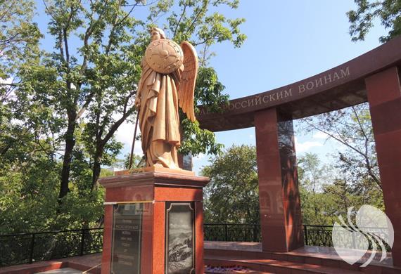 沿着斯维特兰斯卡亚大街上,我们可以看到日俄战争英雄纪念碑,在基座的中央是天使长米歇尔,造型是天使雕带盾牌,手里拿着剑.