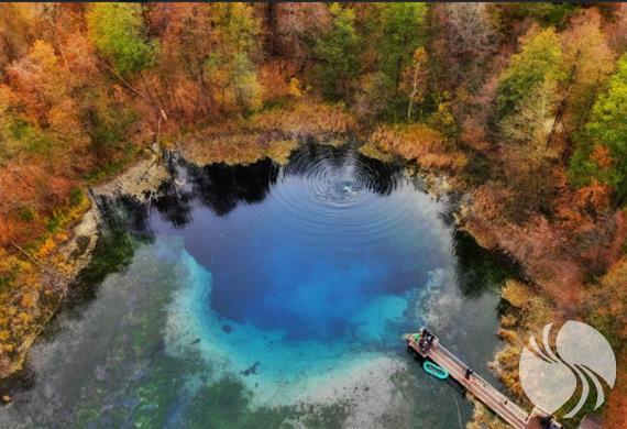 在喀山市主要有三个自然系统的水资源保护区,蓝湖是就是其中之一。能够形成蓝湖没得的湛蓝的原因是由于水中的硫酸盐元素所致